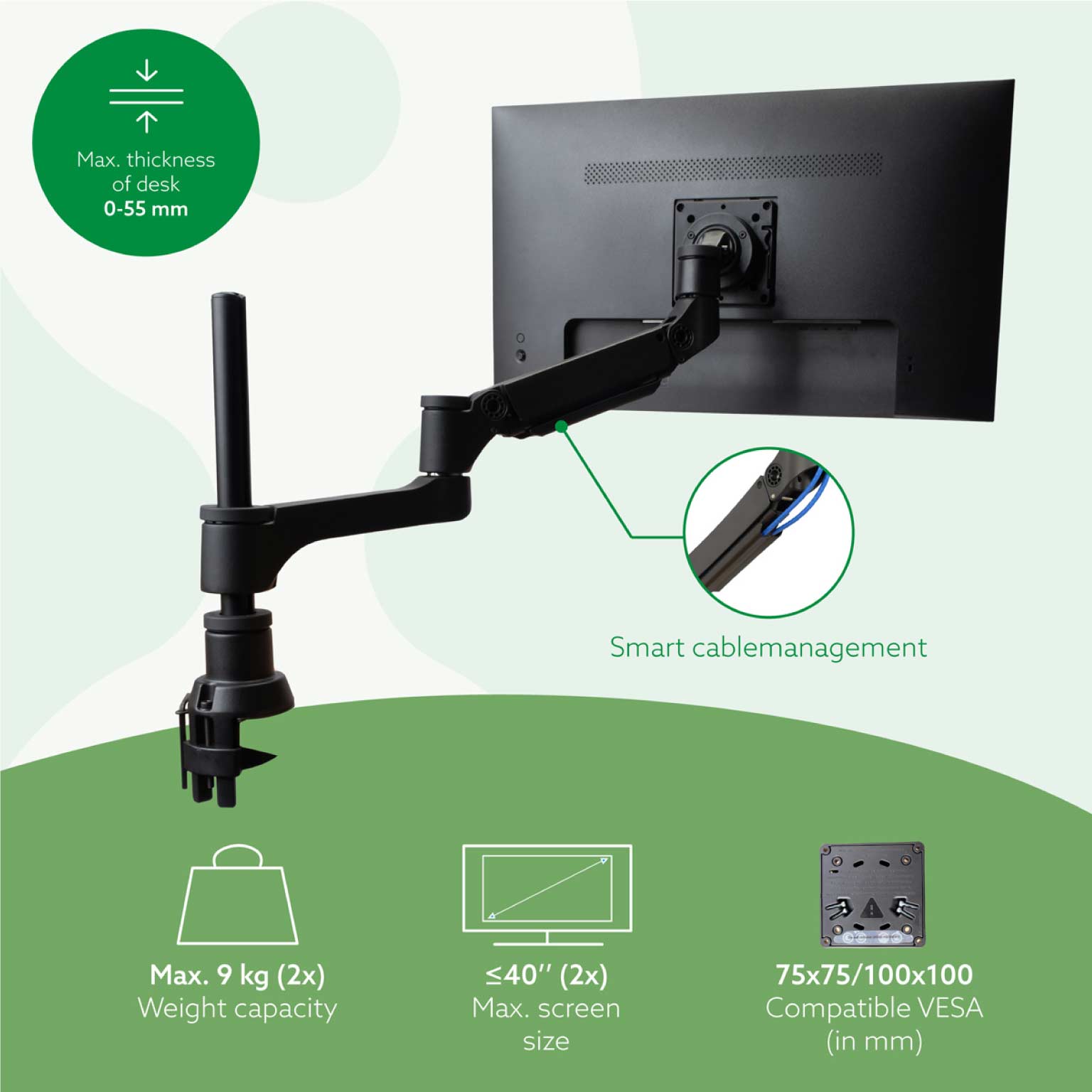 Perfect for corporate offices, home workstations, and hybrid work environments, the Caparo double monitor arm offers strong support, smooth movement, and easy installation, all designed to improve posture, boost productivity, and keep your workspace organised.